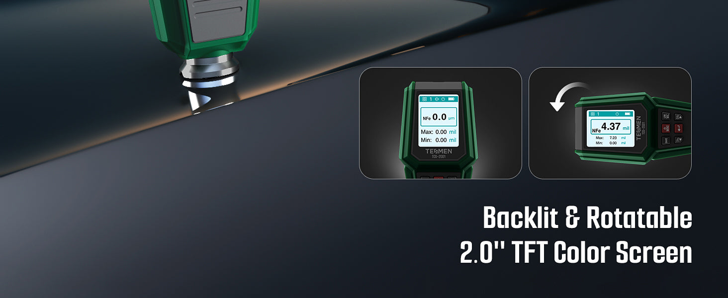 Smart Dual-Tech for Instant Detection: 2-in-1 probe with electromagnetic induction and eddy current sensing automatically distinguishes ferrous and non-ferrous metals. Instantly delivers precise coating thickness results on steel, zinc, and aluminum panels—perfect for car paint checks and professional inspections.