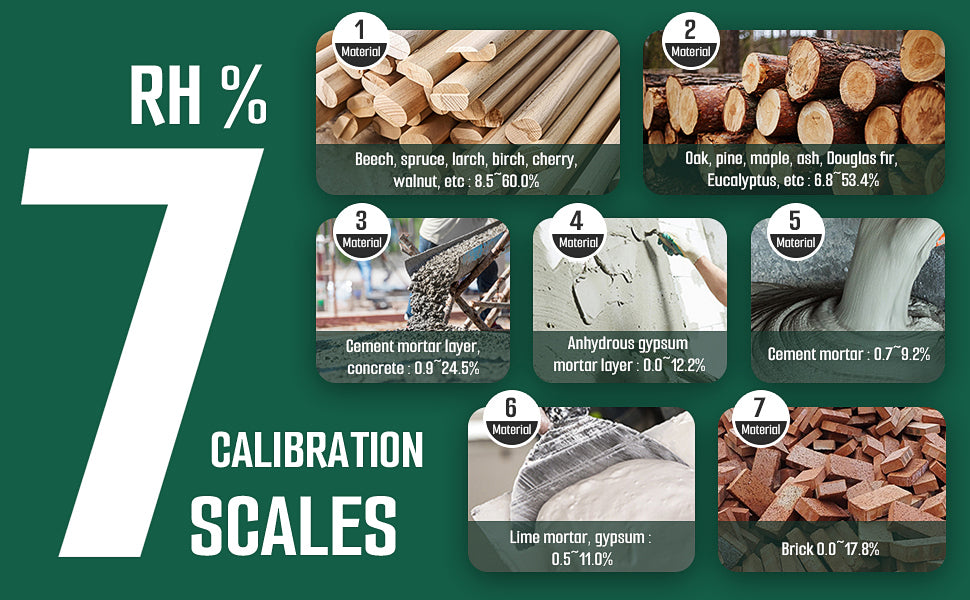Featuring 2 modes and 7 calibration scales tailored to various woods and construction materials, covering a moisture range from 0.0% to 58%. The data-hold function ensures stable and accurate recordings for informed decision-making.