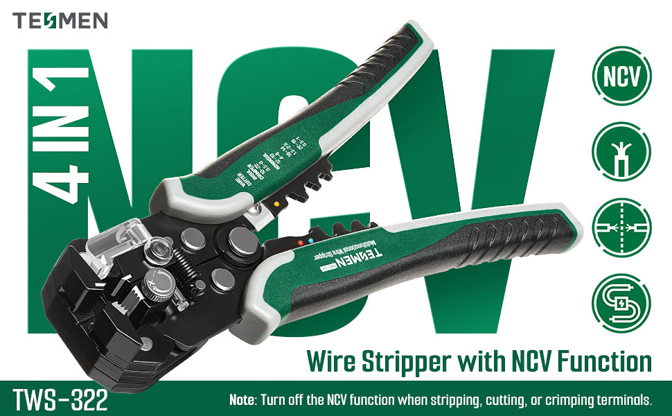 The TESMEN TWS-322 wire stripper is equipped with a dependable non-contact voltage testing feature.