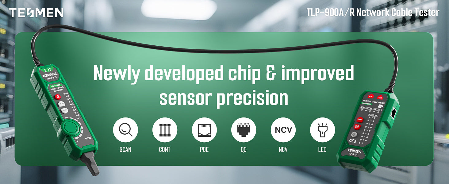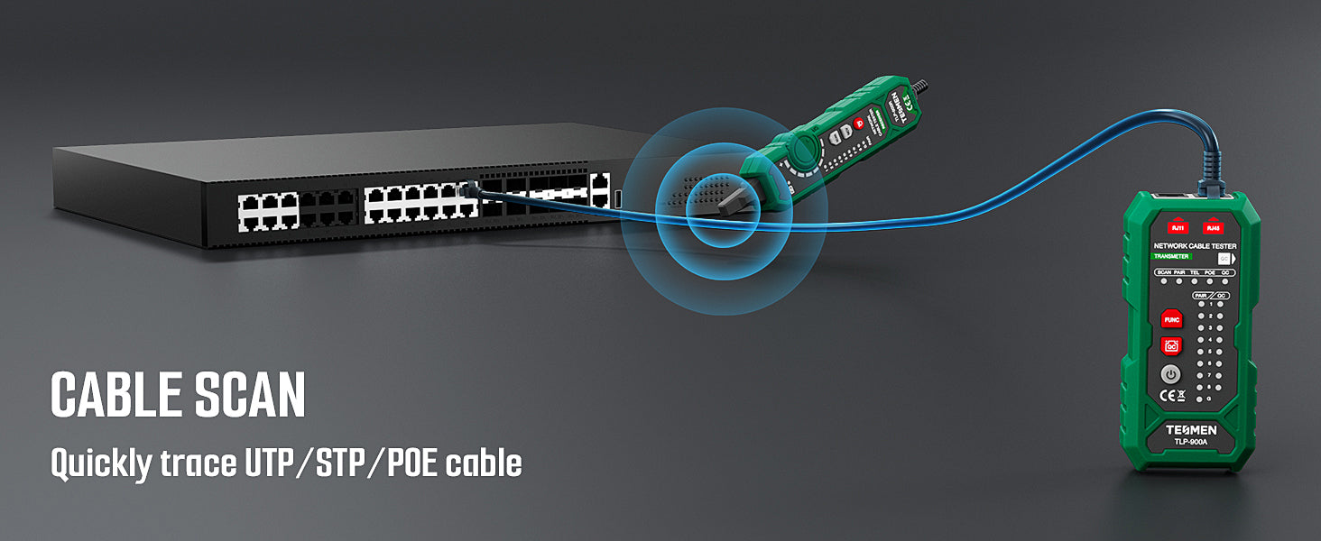 Anti-interference network cable tester: TESMEN TLP-900A/R can cable tracking, line positioning, suitable for CAT5/CAT6/POE/shielded cables and telephone lines, non-metallic durable sensitive probe, can help you quickly find the required cables in cable bundles, under carpets, decorative walls, and ceilings. It is a good helper for engineering wiring, daily network and equipment maintenance.